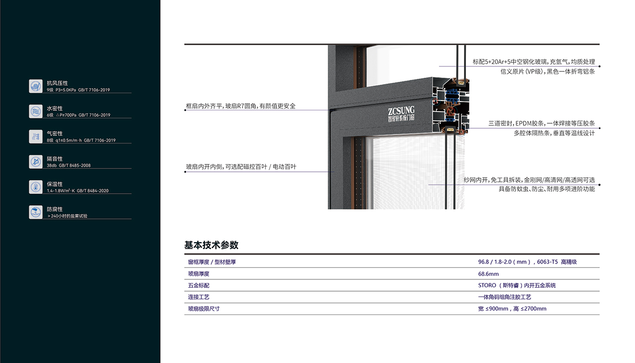 ※ 窗紗一體,雙內(nèi)開(kāi)設(shè)計(jì),紗窗免附框安裝,清洗方便